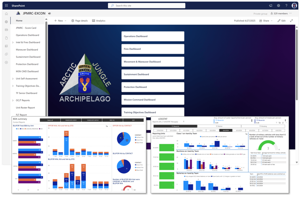 Figure 1. Microsoft SharePoint landing page for exercise control dashboards